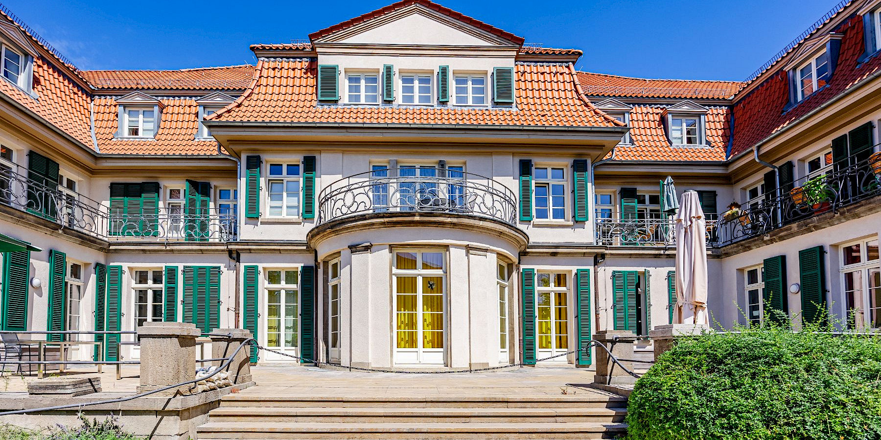 Herzlich willkommen im Frankfurter Diakonissenhaus – einer Jugendstilvilla mit liebevoll gestaltetem Garten und eigener Kirche, mitten im lebendigen Frankfurter Nordend.