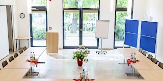 For your event, 6 bright meeting rooms with a special atmosphere are available, including the church if required. You can also order the conference service - from projector to catering - and arrange the rooms according to your needs with tables, chairs and media. Our competent and helpful staff will be happy to assist you with the planning and prepare the room according to your wishes before your arrival with us. During your stay with us, we will provide you with the catering you have booked.