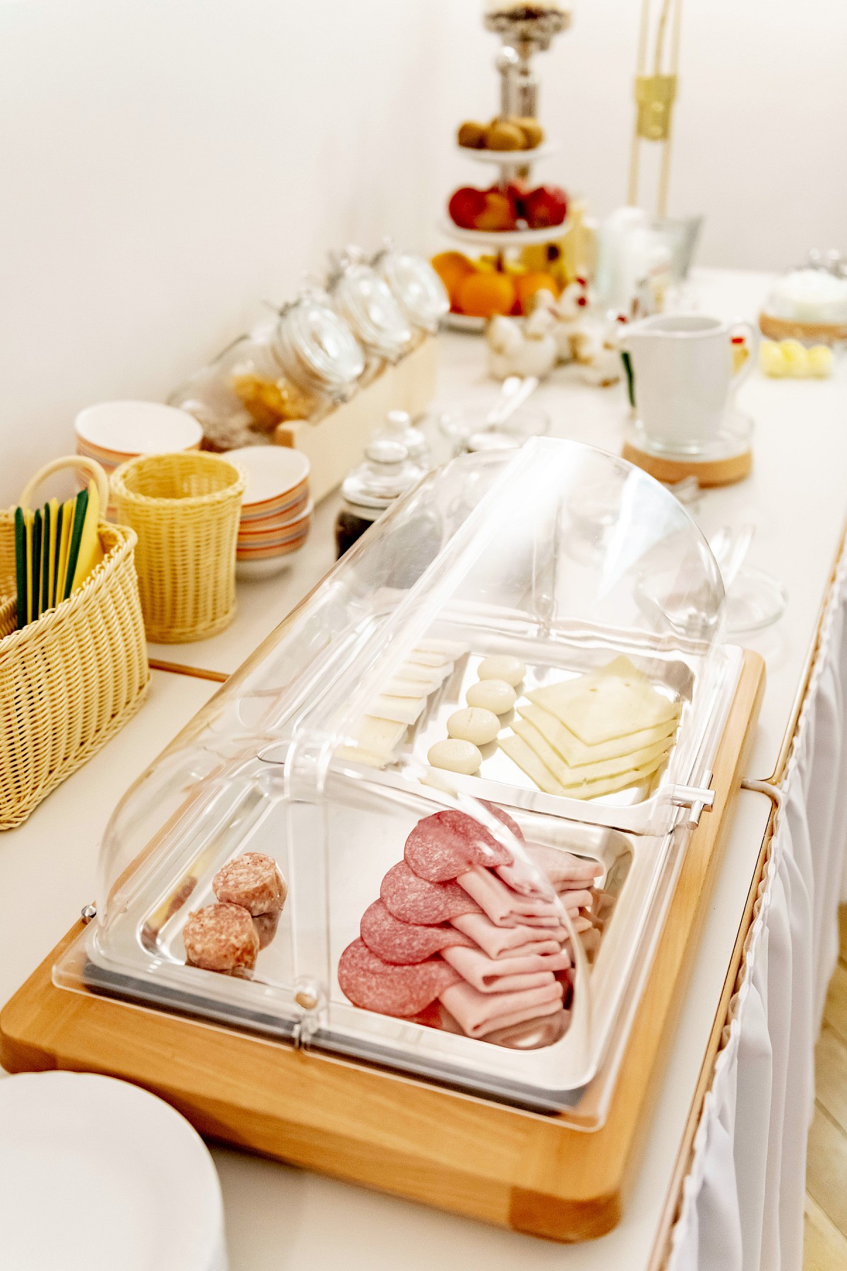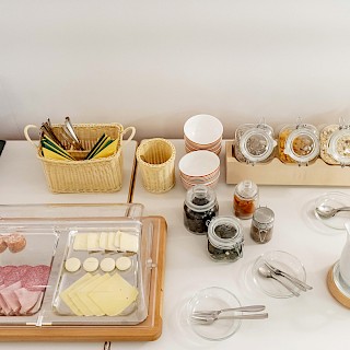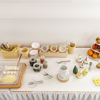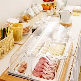 Start the morning with a delicious and healthy breakfast. The breakfast buffet includes a rich selection of cold meats and cheeses as well as eggs, cereals, jams, yoghurt, fresh fruit and different types of bread / rolls. For drinks, you can choose between coffee, tea, water and various juices.