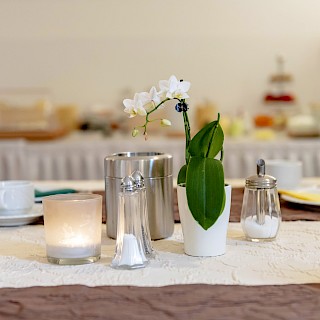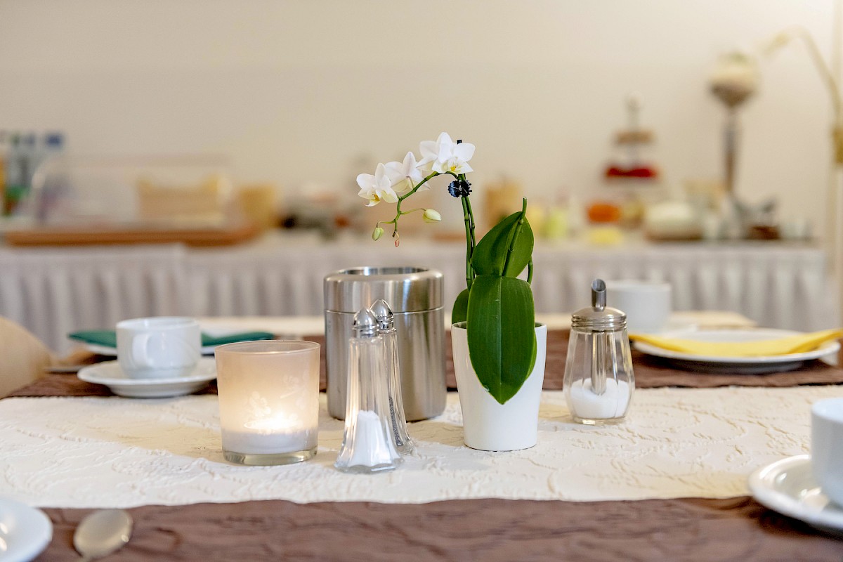Our beautiful dining room offers the perfect setting to start the new day invigorated. In summer, when the weather is nice, we open our beautiful terrace for you to enjoy your breakfast there. Feel at home with us, whether you are a private or business guest.
